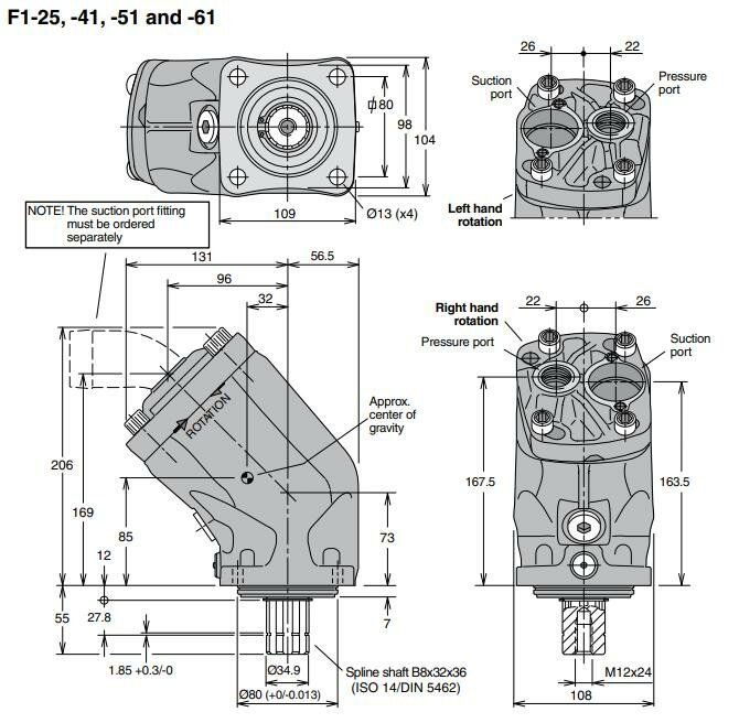 Čerpadlo pístové axiální F1-051-L, 51 ccm/ot., 350 bar, levotočivé, 2700 RPM