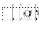 Hydraulický 3cestný redukční přímořízený ventil mezideskový NG06, CETOP 03, Q max=40 l/min, P, A, B 350 bar, T 50 bar, rozsah do 160 bar, měřící vstup G1/4"