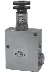 Hydraulický vestavný pojistný ventil se zpětným ventilem, Q max=60 l/min, P max= 350 bar, rozsah nastavení tlaku 6,9 - 69 bar (100 - 1000 PSI), včetně bloku pro montáž do potrubí, vstupy SAE - 8