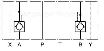Hydraulický zámek mezideskový NG16, ISO 4401, Q max=200 l/min, P max=350 bar, otvírací tlak 2 bary