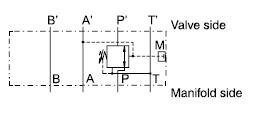 Hydraulické prvky Hydraulické stohovatelné (mezideskové) ventily Redukční NG10 Hydraulický 3cestný redukční přímořízený ventil mezideskový - NG10