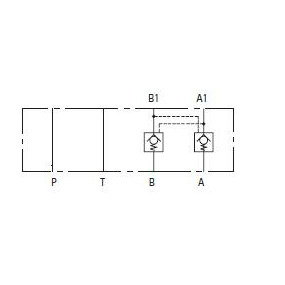 Hydraulický zámek mezideskový NG06, EATON - Vickers CETOP 03, DIN 24340 NG6, ISO 4401 - 03, NFPA D03, Q max=60 l/min, P max= 315 bar, otvírací tlak 1 bar