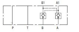 Hydraulický zámek mezideskový NG06, EATON - Vickers CETOP 03, DIN 24340 NG6, ISO 4401 - 03, NFPA D03, Q max=60 l/min, P max= 315 bar, otvírací tlak 1 bar